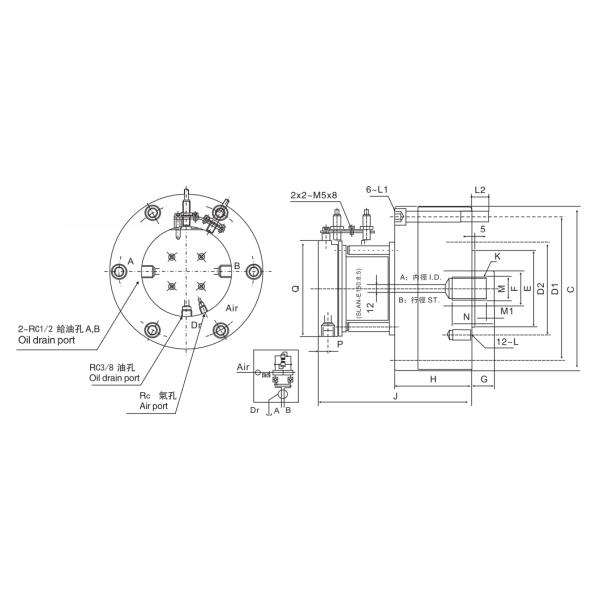 For short from,lightc weight and high speed rotary cylinder.To allow compressed air to be feed from the rear end of the distributor through the rotating union.suitable for vertical lathe.